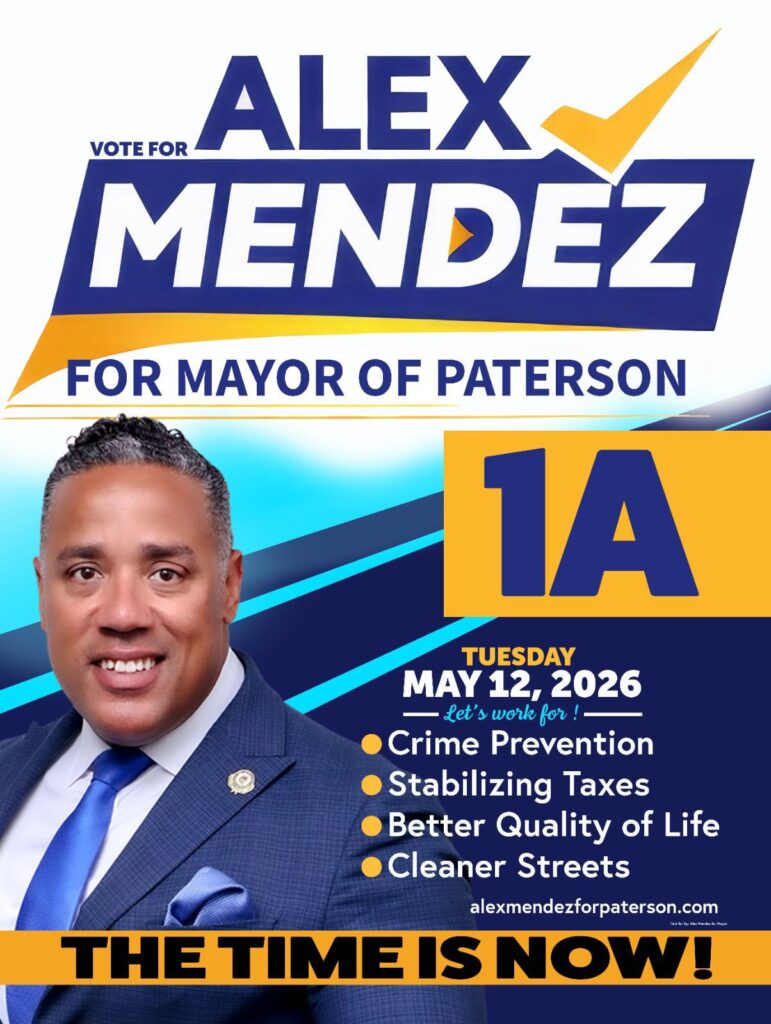 Paid for by Alex Mendez for Mayor, 266 East 19th Street, Paterson, NJ 07524